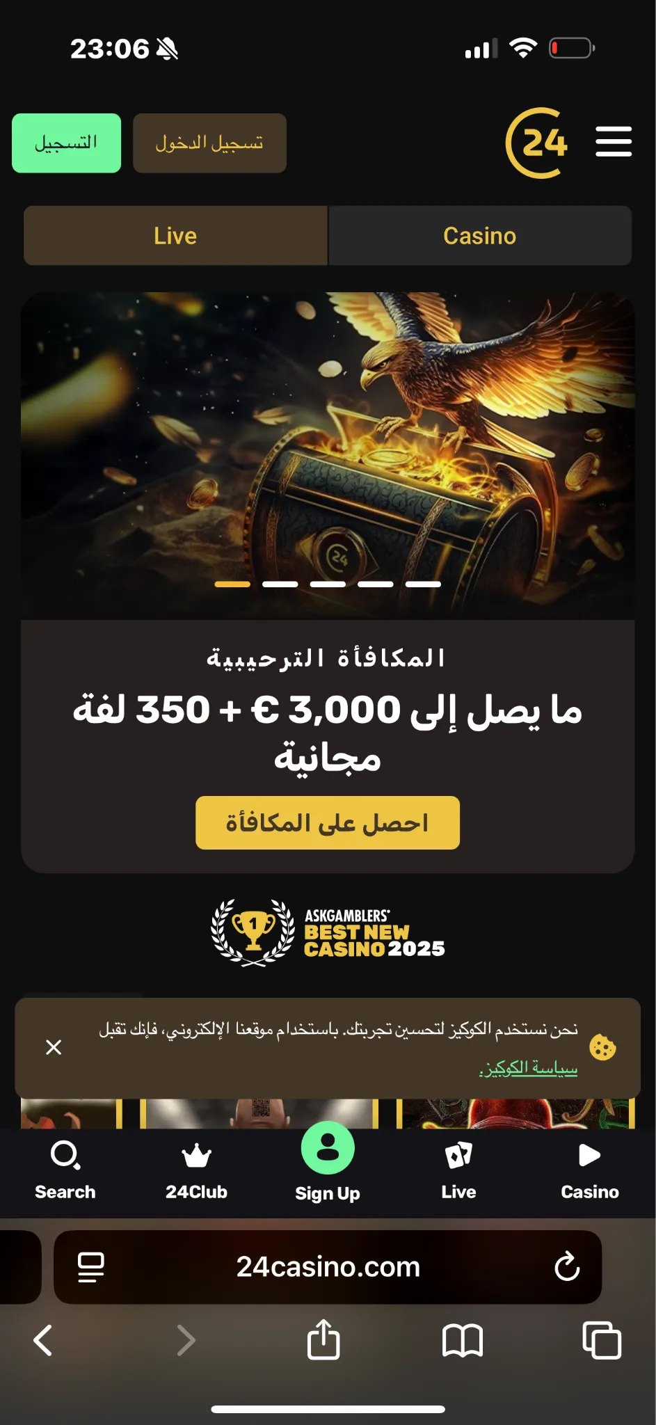 - عدم توفّر تطبيق كازينو مخصّص: يفضل العديد من اللاعبين العرب الكازينوهات التي توفّر تطبيق كازينو مخصّص، وذلك لسلاسة اللعب وسهولة الوصول إلى مختلف أقسام الكازينو، وهذا ما لا يوفّره كازينو 24casino حتى الآن.